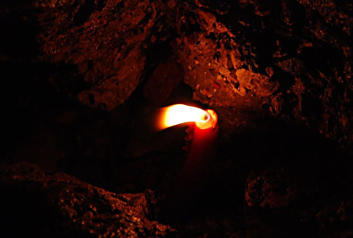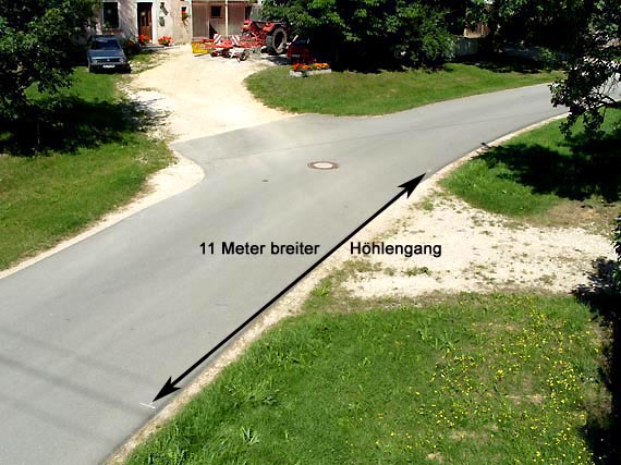 nach unten hören. Weiter unten verläuft ein geräumiger Höhlengang, welcher sich unter