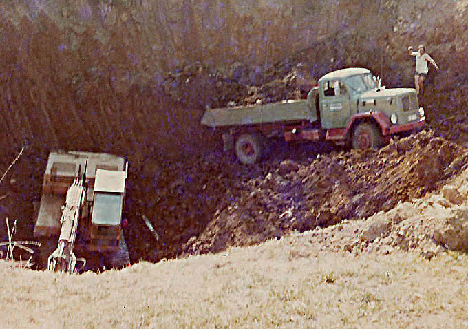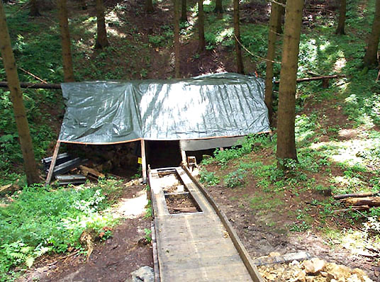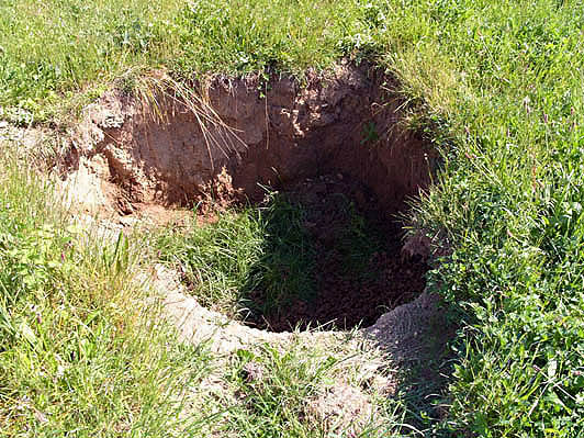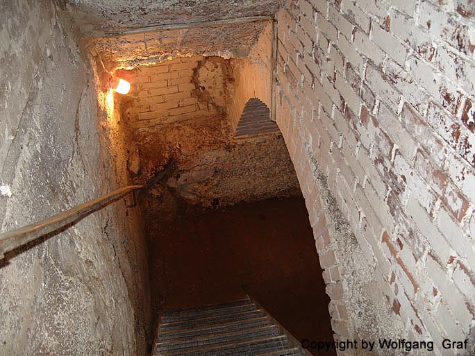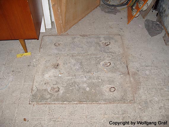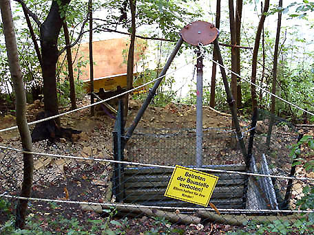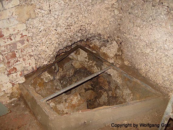 Photo oben zeigt den Deckel über dem Abgrund zu einer über 4 Meter tiefen