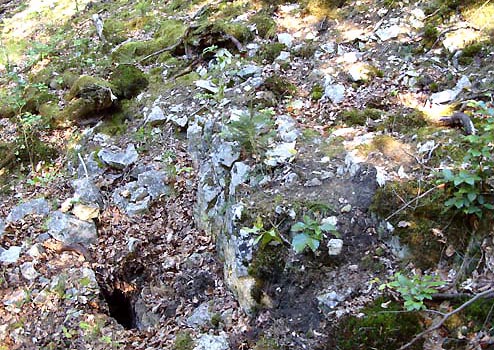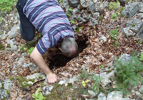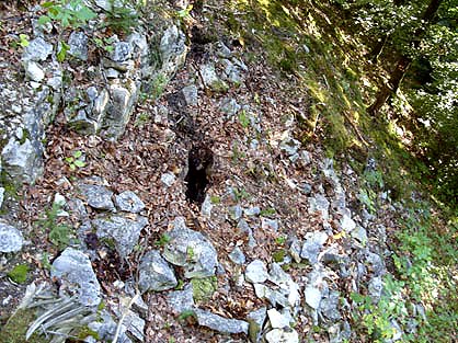 Photo oben zeigt den Abstieg zu der ca. 2 Meter tiefen Einbruchspalte.