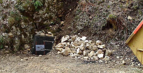Höhlengang endet nach ca. 270 Meter an einem Versturz. Durch diesen Versturz