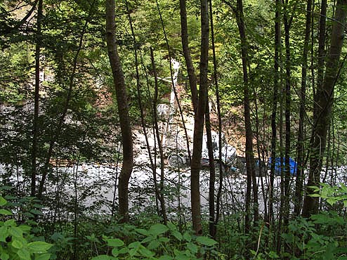 Meter tiefen Einbruch, kann man deutlich das schnelle Abfließen des Wassers